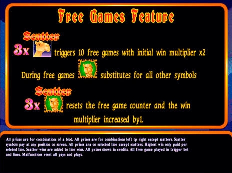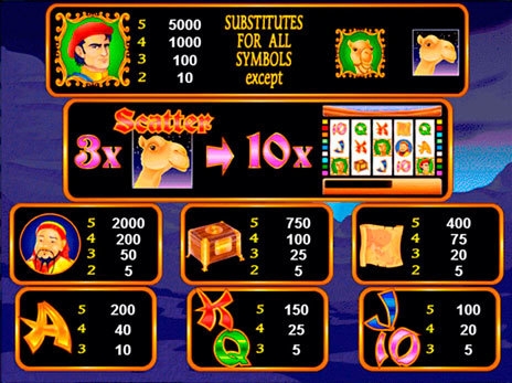 Обитатель жарких стран – верблюд выполняет функции символа разброса. Scatter служит для активации раунда бесплатных вращений.